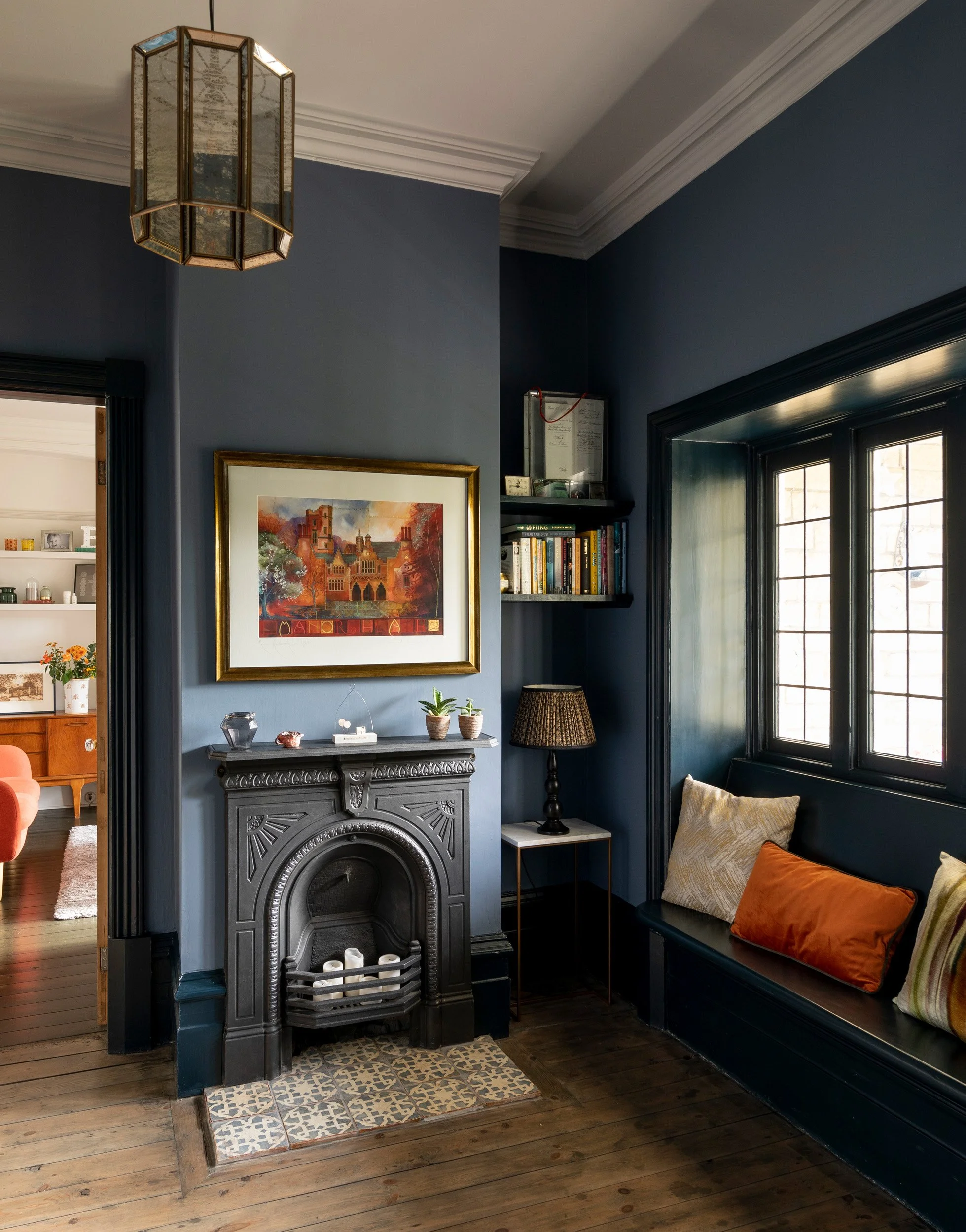 In a move away from the long narrow hallways of the preceding Victorian era, many hallways in Edwardian homes tend to be more square in shape. It was quite common for them to include a fireplace as a focal point, sometimes with a window seat next to it, where the man of the house could take off his shoes and warm his feet by the fire after a long day's work. This is my favourite spot in our house.