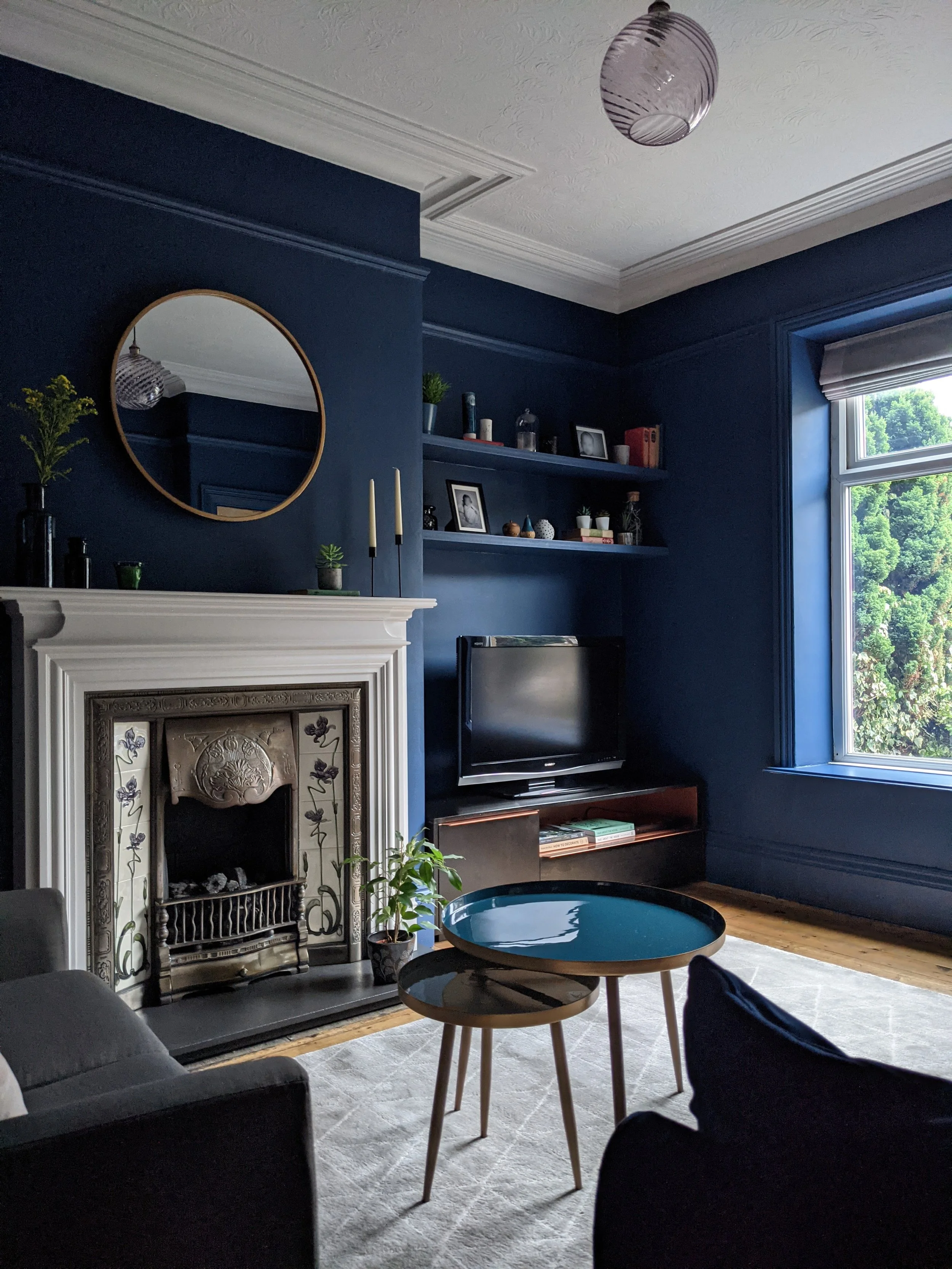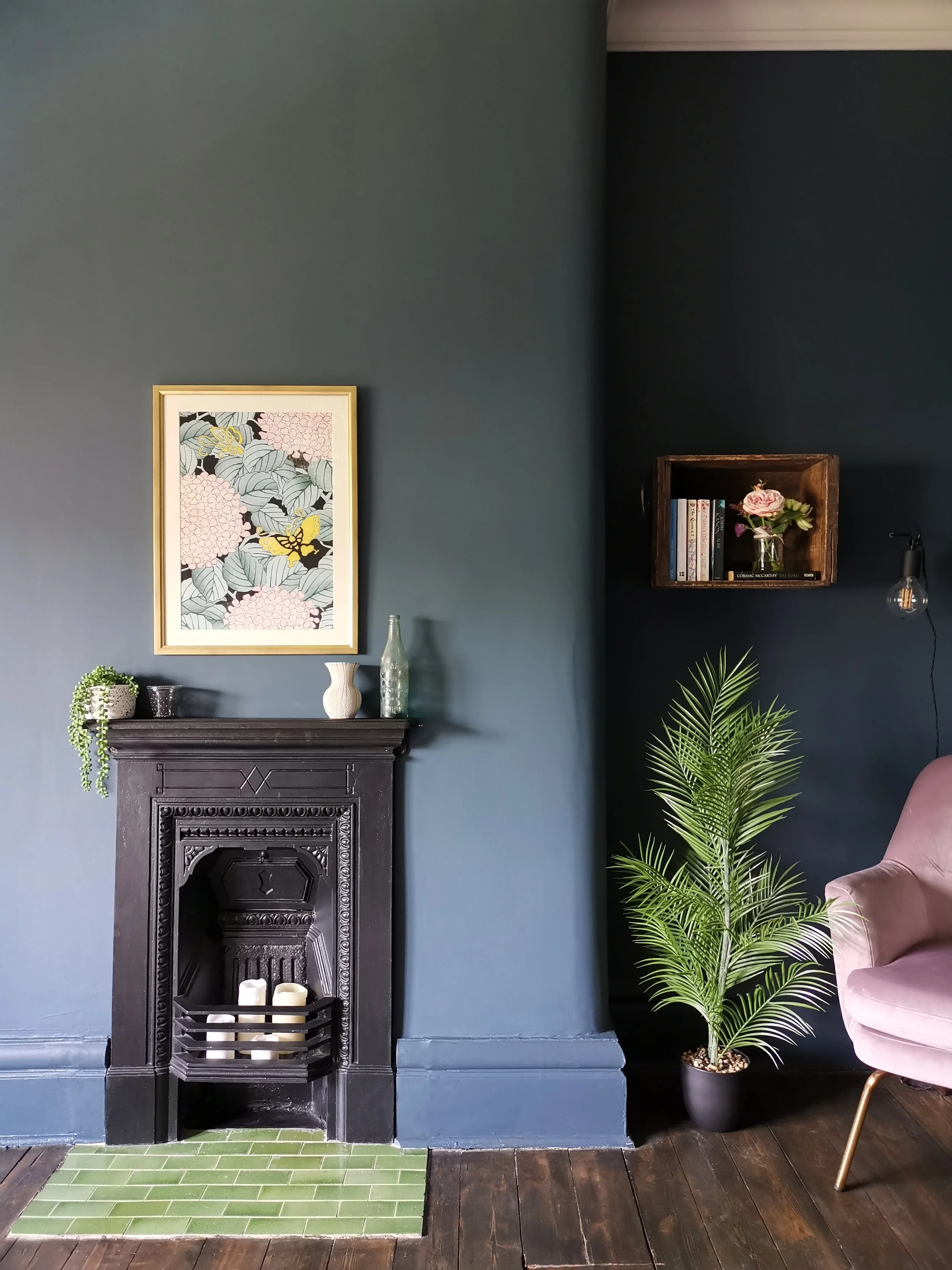 Cool shades of light blue can feel too cold in the afternoon light so make sure you choose one with a green undertone. Going dark for an enveloping feel is also a great option for a living room or a bedroom that you mainly use in the evenings.