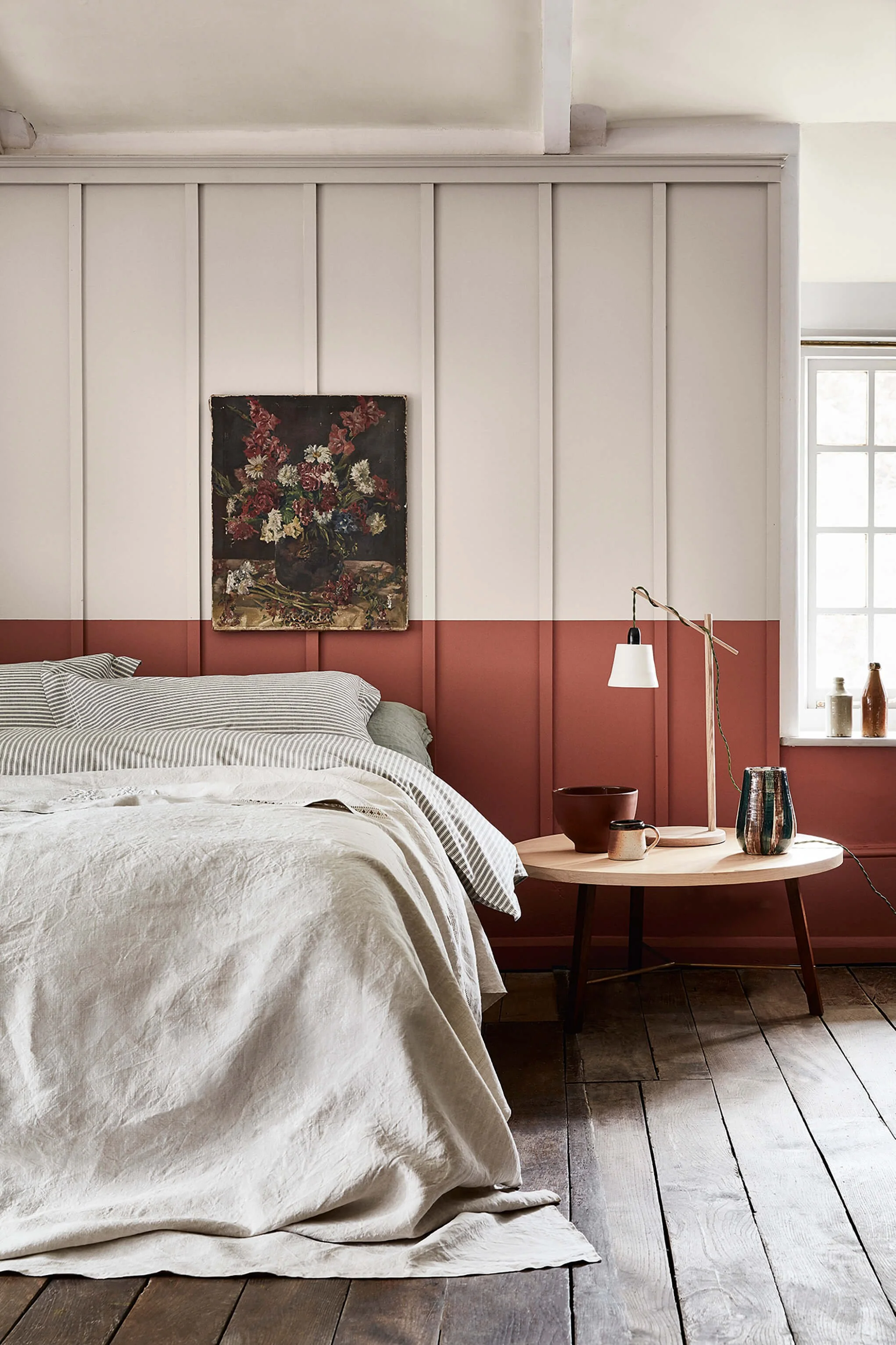 Soft, muted pinks with warm undertones and earthy reds work beautifully in east facing rooms. Just bear in mind that they will feel more vibrant in the morning light. And be careful with pinks that have cool undertones - they have a tendency to appear lilac later in the day.