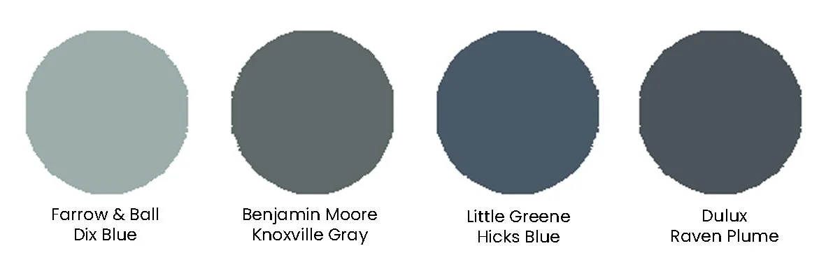 Raven Plume (Dulux) - Definitely more muted than Hicks Blue, this dusky dark blue has subtle grey undertones - perfect for relaxation. It has depth but doesn't feel overpowering.