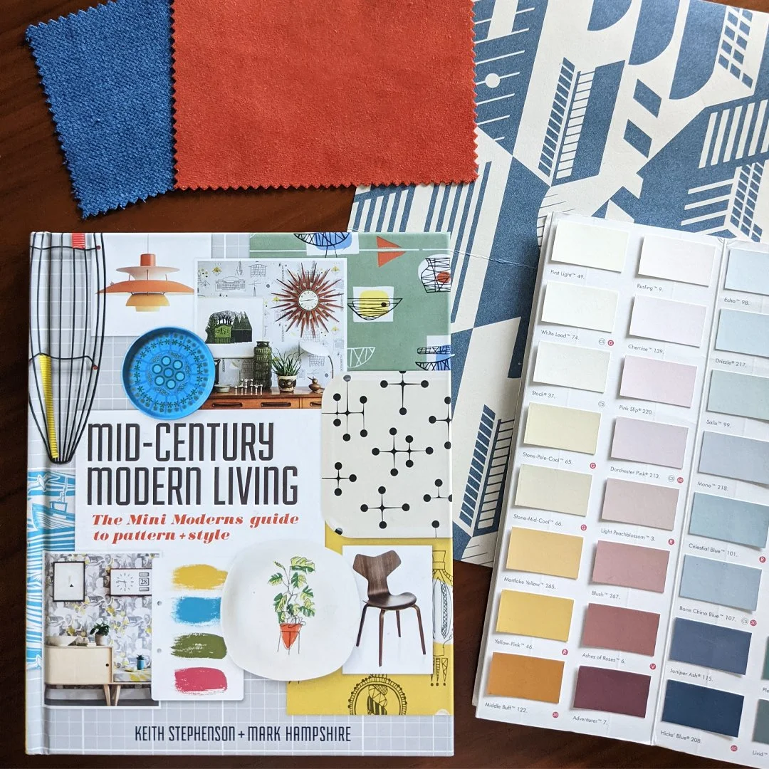 Concept board, showing suggested colours, materials and styles for the scheme.